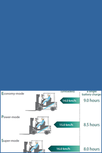 ※단 한번의 충전으로도 장시간 사용 가능한 배터리 (EPS옵션지게차) 고효율 AC 모터를 장착하여 단 한번의 충전으로도 장 시간(9시간) 사용 가능